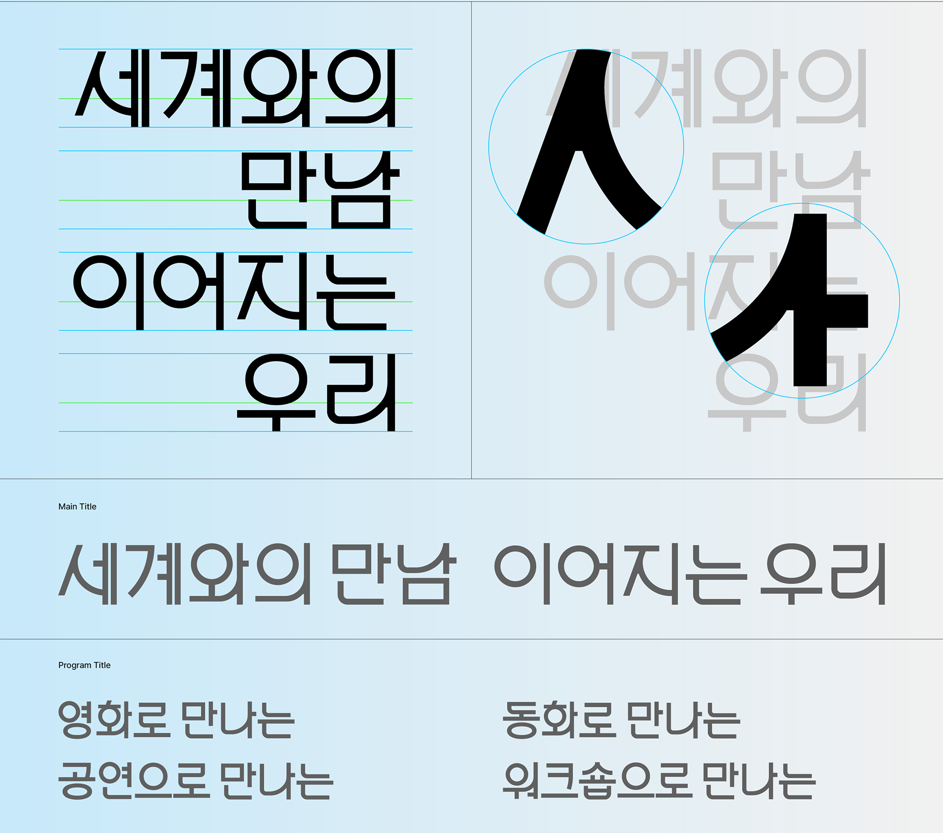 FRONT KIT adopted the motif of the “ring” to convey the ideas of hyper-connectivity and inevitable coexistence that define the current global era. This concept was reflected across all brand applications of the main event—including the key visual, spatial design, and video—expressed through forms that connect, intersect, and blend with one another. The developed master graphic was further expanded through a variation process, serving as the master visual system for four embassy-linked programs and two sub-programs, creating a layered and immersive visual impact across the event.